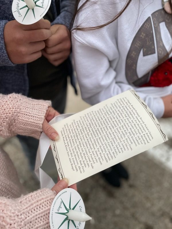 A moment of silence followed by a candle-lit walk-along will begin at sunset.